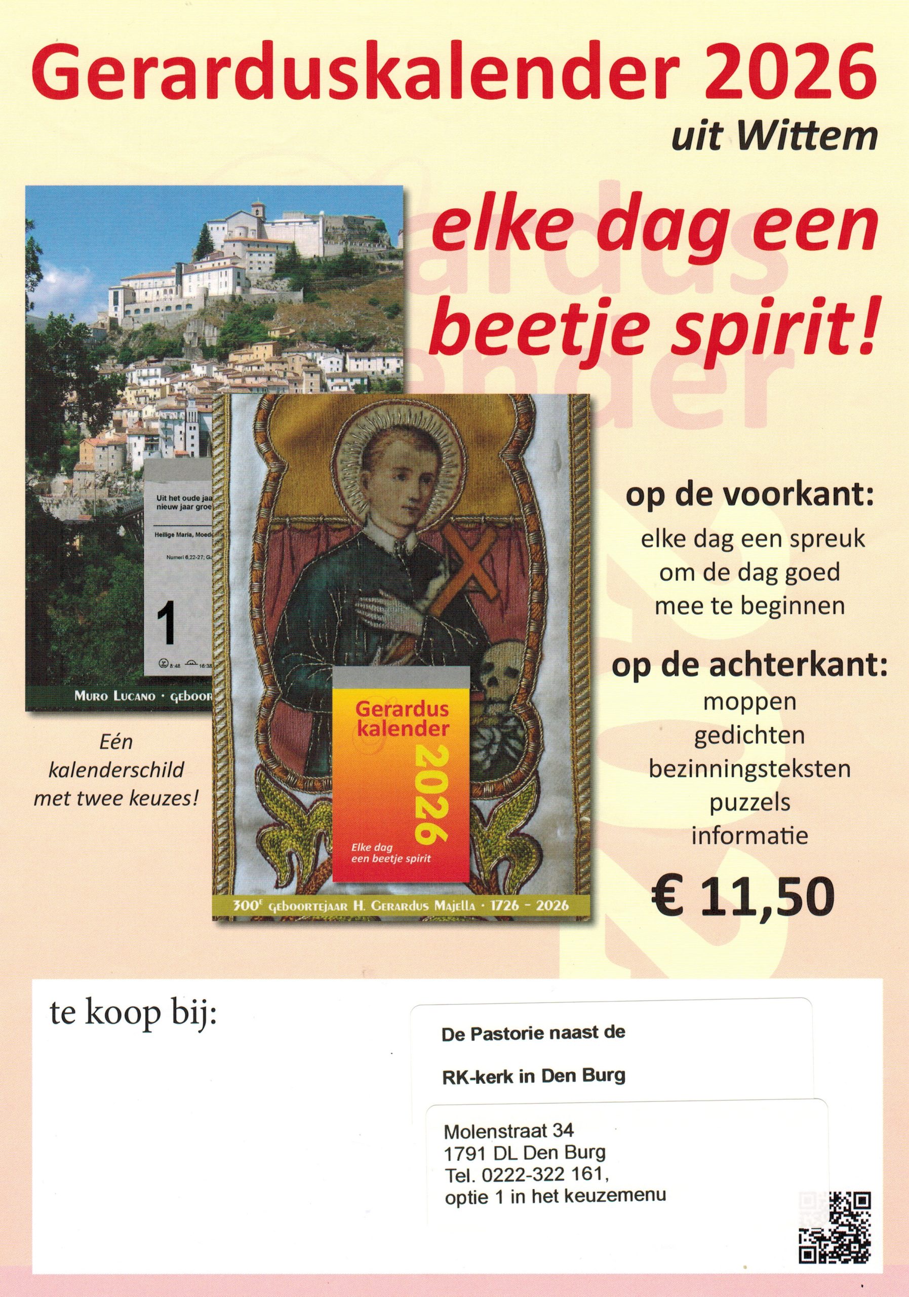 | zondag 26 oktober | 10.00 | Den Burg | Eucharistie, koffie |